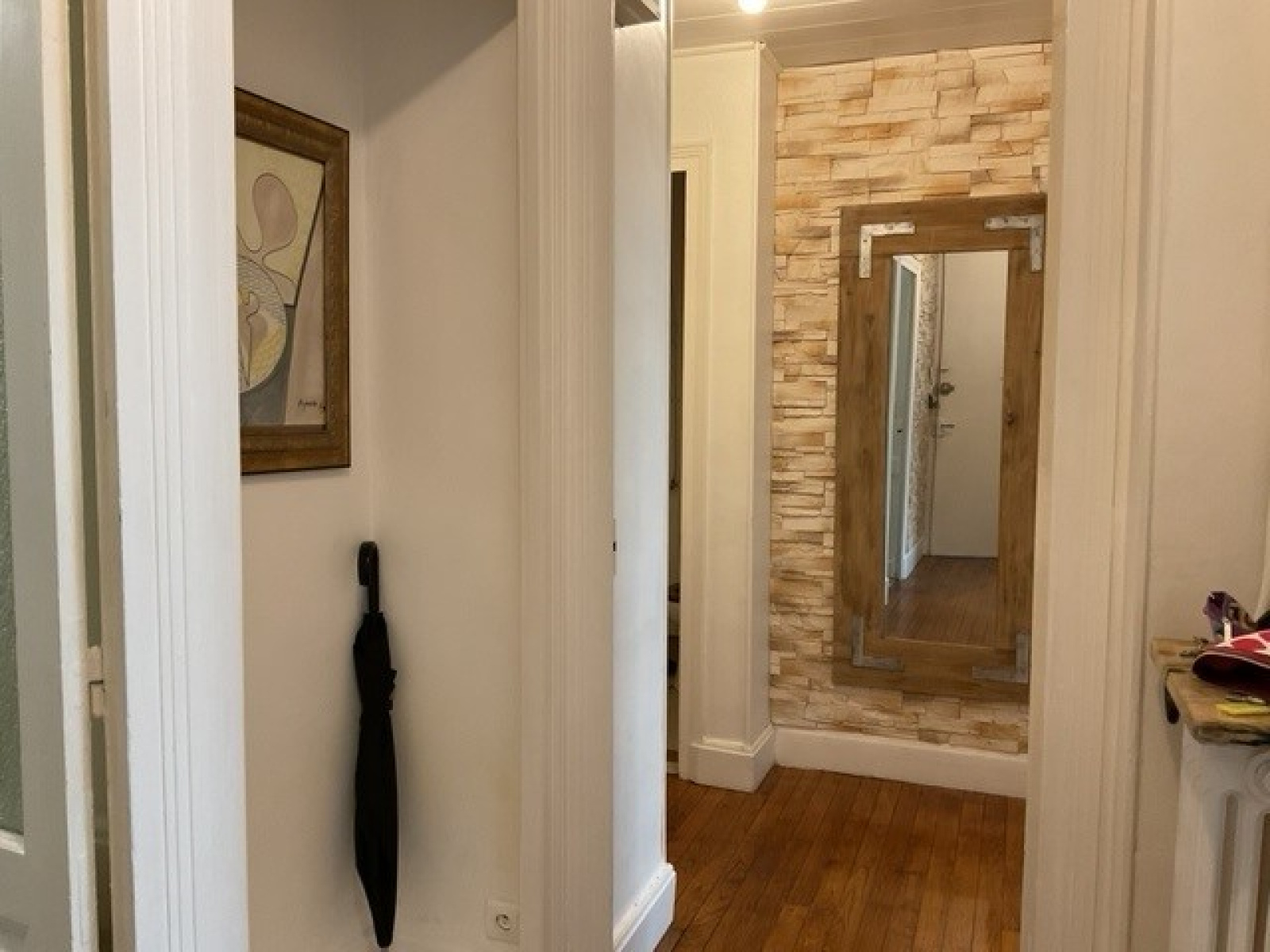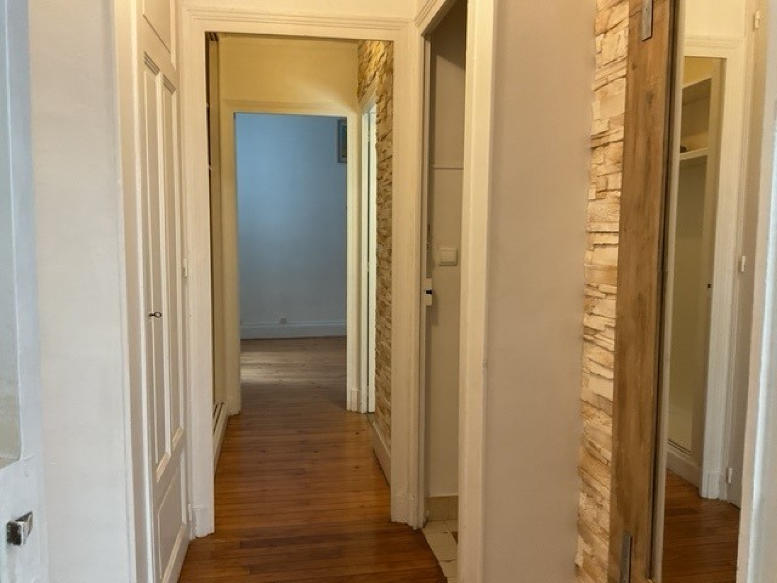 Ce dégagement dessert également, une première grande chambre de plus de 13m² avec un point d'eau, un WC séparé de la salle d'eau avec douche italienne et une seconde grande chambre de plus de 13m².