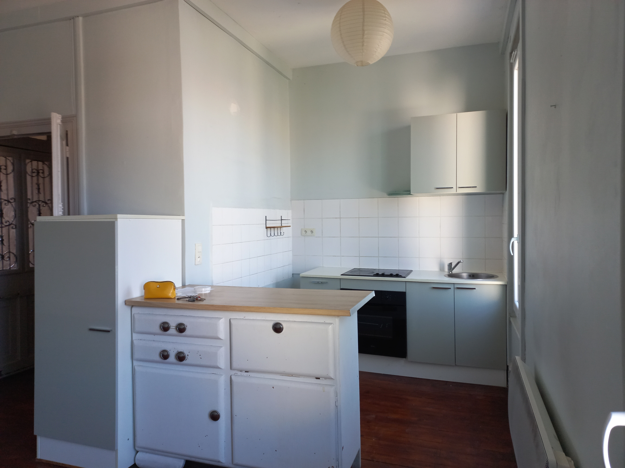 Au premier niveau : entrée, grand séjour avec balcon, cuisine ouverte.