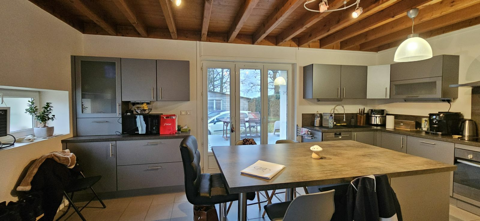 à propos de cebienNouvelle EXCLUSIVITÉ ! Environnement calme et agréable, pour cette agréable maison très bien entretenue, composée en rez-de-chaussée d'une pièce de vie avec cuisine ouverte et équipée, salon, wc, placard, cellier, terrasse. A l'étage 3 chambres, salle de bains et douche. Double vitrage, convecteurs électriques et poêle à bois, assainissement conforme,